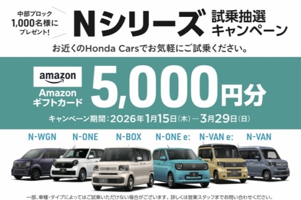 Nシリーズの新車をご試乗いただいた方の中から抽選で1000名様に