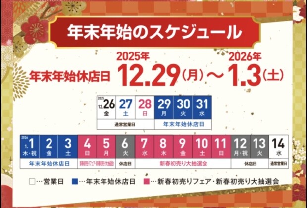 当社は12月29日~1/3日まで年末年始休店日となります。